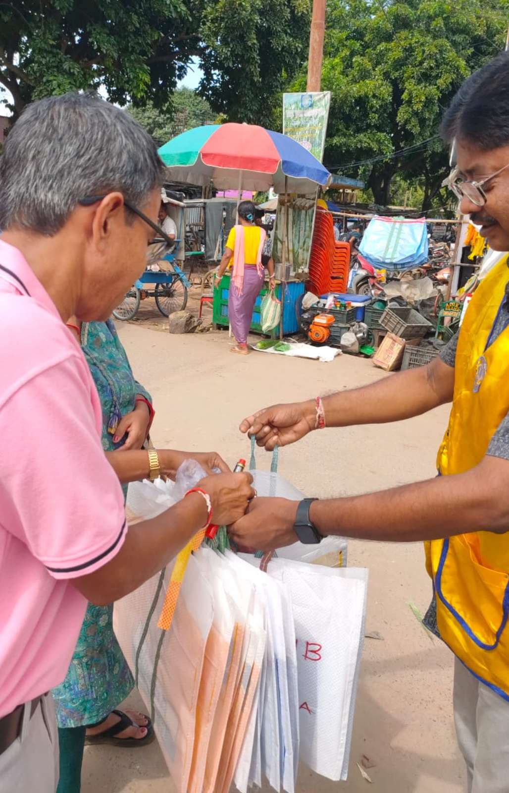 To avoid single use plastic carry bags we the members of Lions Club of Teliamura distributed multi use carry bags to the general public who were came at Teliamura market on and aware them about bad effect of single use plastic carry bags.