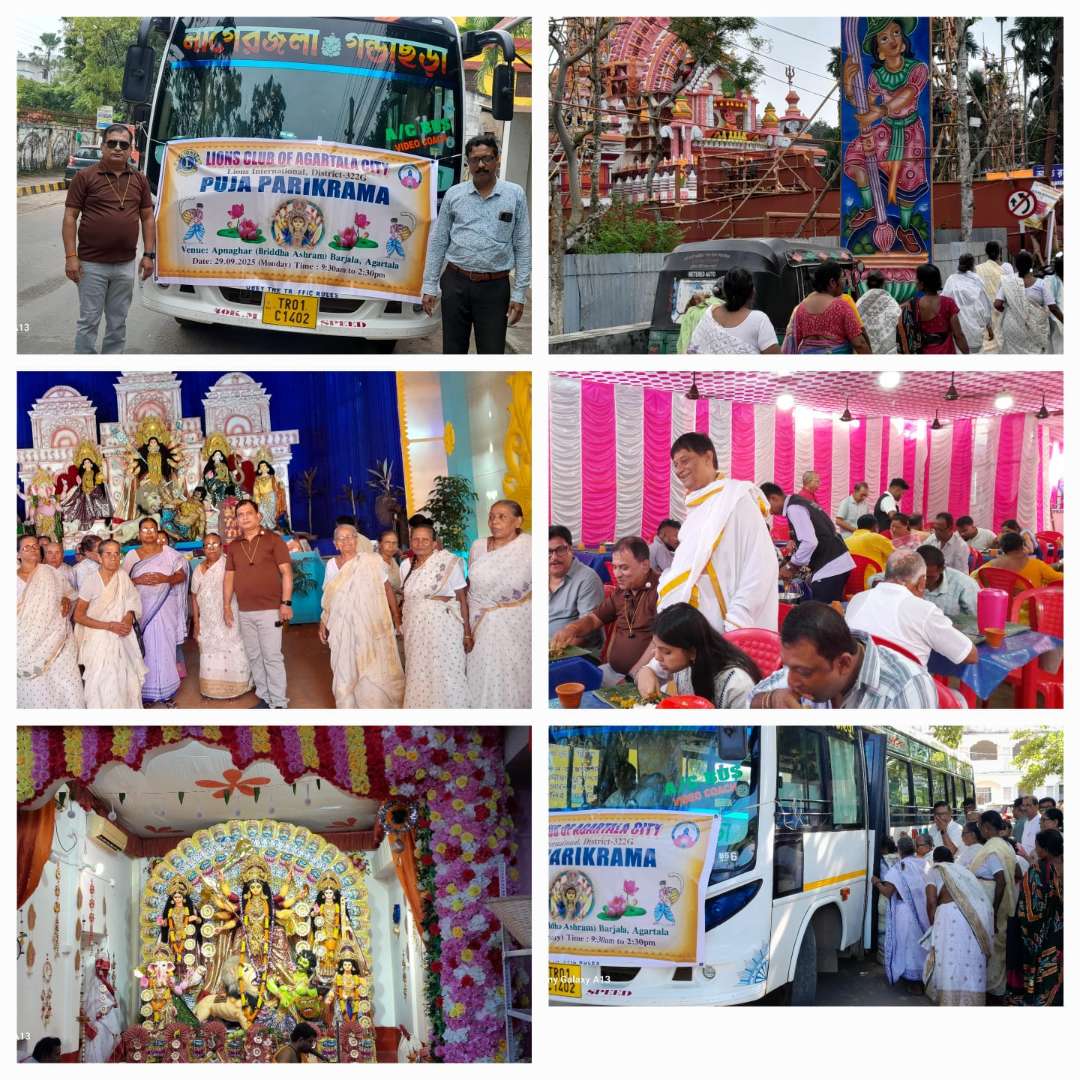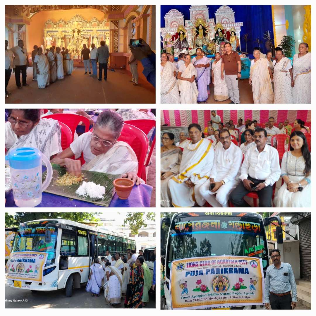 *Durga Puja Parikrama by Lions Club of Agartala City* Dear lions friends, yesterday 29.09.2025 Monday, Lions Club of Agartala City Organized a Durga Puja Parikrama with 25 elderly mothers from Apna Ghar, BRIDHYA ashram, Agartala. Along with them, our Lion members also participated warmly during the Parikrama, all major puja pandals of Agartala City were visited. After completing the Puja Parikrama Prasadam was hosted at the residence of our District cabinet member Ln. Tapas Chakraborty. The program concluded with everyone returning together to the Apna Ghar Ashram, sharing togetherness, joy and festive spirit. Wishing you all a Happy Durga Puja, Long Live Lionism Lion Pradip Saha President Lions Club of Agartala City
