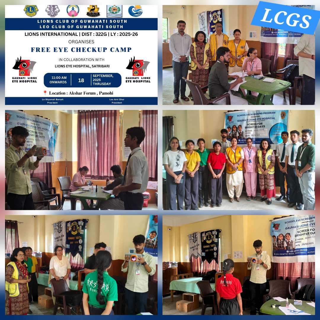 "Look Good, See Better, Free Eye Check Up Camp. " Successfully conducted a Free Mega Eye Check Up Camp in collaboration with Lions Eye Hospital at "Akshar Forum", Pamohi. (One District One Activity Phase-I).