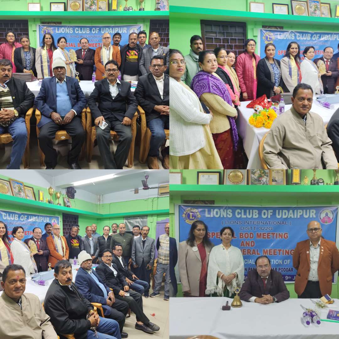 On 9th January 2026, Udaipur Lion’s Club successfully organized a Special Board of Directors Meeting along with a General Meeting. The occasion was graced by Governor Lion Pankaj Kumar Poddar, Zone Chairperson Lion Sajal Kumar Pal, and Region Chairperson Lion Sudeshna Bhattacharya, who attended as Guests of Honour. During the meeting, the Club presented a comprehensive review of activities carried out throughout the year, highlighting impactful service projects, community welfare initiatives, and ongoing commitments. Special emphasis was laid on environmental conservation, where members discussed future plans and innovative ideas to enhance the Club’s contribution towards a cleaner and greener environment. The Guests of Honour appreciated the dedication and efforts of the Club and encouraged members to further strengthen service activities with greater outreach and sustainability. The program concluded on a warm and cheerful note, filled with laughter, shared memories, and fellowship, followed by a dinner, reinforcing unity and camaraderie among members.
