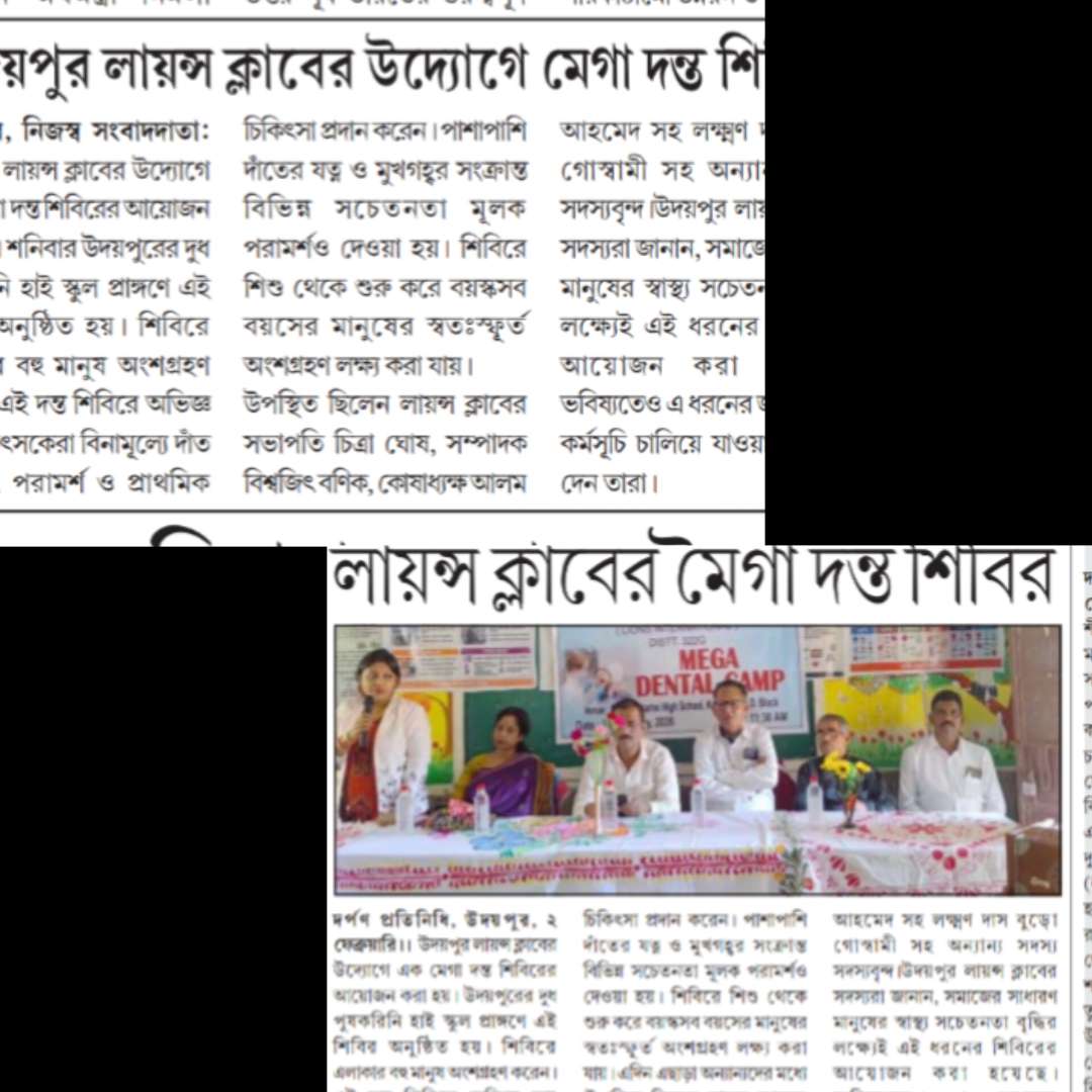 On 31st January, the Lion’s Club, Udaipur successfully organized a Mega Dental Camp at Dudhpuskarini High School with the aim of promoting oral health awareness and providing free dental check-ups to the community. The camp was conducted under the supervision of Dr. Sayanika Biswas, who examined and treated approximately 200 patients during the camp. A total of 9 Lion’s Club members were present at the venue and actively volunteered to ensure the smooth functioning of the camp. The camp was well-organized and received a positive response from the participants. It played a significant role in raising awareness about dental health and the importance of regular dental check-ups. The Lion’s Club, Udaipur, once again demonstrated its commitment to community service and public health through this successful initiative.