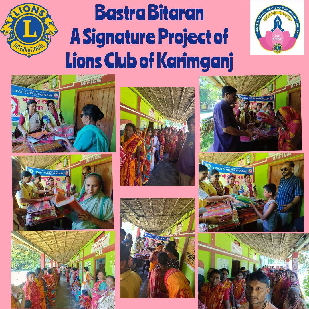Bastra Bitaran – A Signature Project of Lions Club of Karimganj Durga Puja is not just a festival—it is the spirit of togetherness, compassion, and joy. Every year, as the Goddess comes home, the Lions Club of Karimganj strives to ensure that even the underprivileged can celebrate with dignity and happiness. Our Signature Project, Bastra Bitaran, reflects this spirit of service and love. This year the project was organized in two phases. In the first phase, we distributed 210 sarees to the underprivileged women of our adopted village Kamargram, wrapping them not just in fabric but in care and festive cheer. In the second phase, sarees were distributed once again with the same devotion, bringing smiles to many hearts. The project became a grand success because of the 35 Lion Members who generously sponsored sarees and stood united for this noble cause. Under the able leadership of President Ln Jaishree Gang and with the heartfelt efforts of Project Chairman Ln Ashok Deb, the program was executed with dedication. In all, 10 Lions and 2 Leos actively participated in the first phase, spreading warmth and joy.