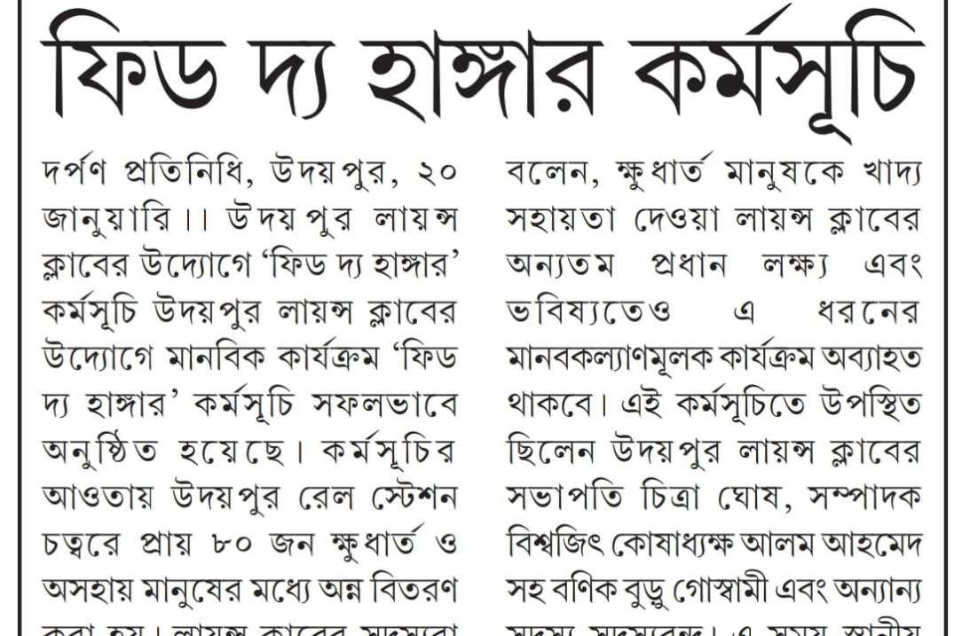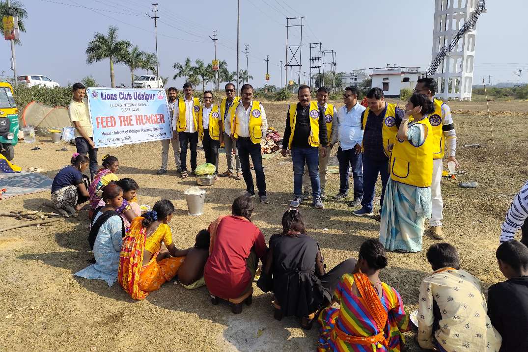 On 10th January 2026, the Udaipur Lions Club brought compassion to action through its “Feed the Hunger” initiative at the Udaipur Railway Station, touching the lives of 200 homeless individuals in a single day. More than a meal, the program was an expression of dignity, care, and human connection for those who often go unseen. • From lunch to dinner, volunteers came together with a shared purpose—to ensure that no one slept hungry that day. A wholesome and thoughtfully prepared meal was served, including dal, aloo bhaja, cauliflower gravy, eggplant pakora, chicken, papad, fresh salad, chutney, and sweets. Each plate carried not just nourishment, but warmth, respect and hope. The smiles, gratitude, and quiet relief on the faces of the beneficiaries reflected the true success of the initiative. The program showcased the Lions Club’s commitment to social responsibility, teamwork, and community service, proving that small acts, when done collectively, can create meaningful change. • This initiative stands as a reminder that feeding hunger is not just about food—it is about restoring faith, spreading kindness, and reaffirming humanity. The Udaipur Lions Club proudly continues its mission of serving those in need, one compassionate step at a time.