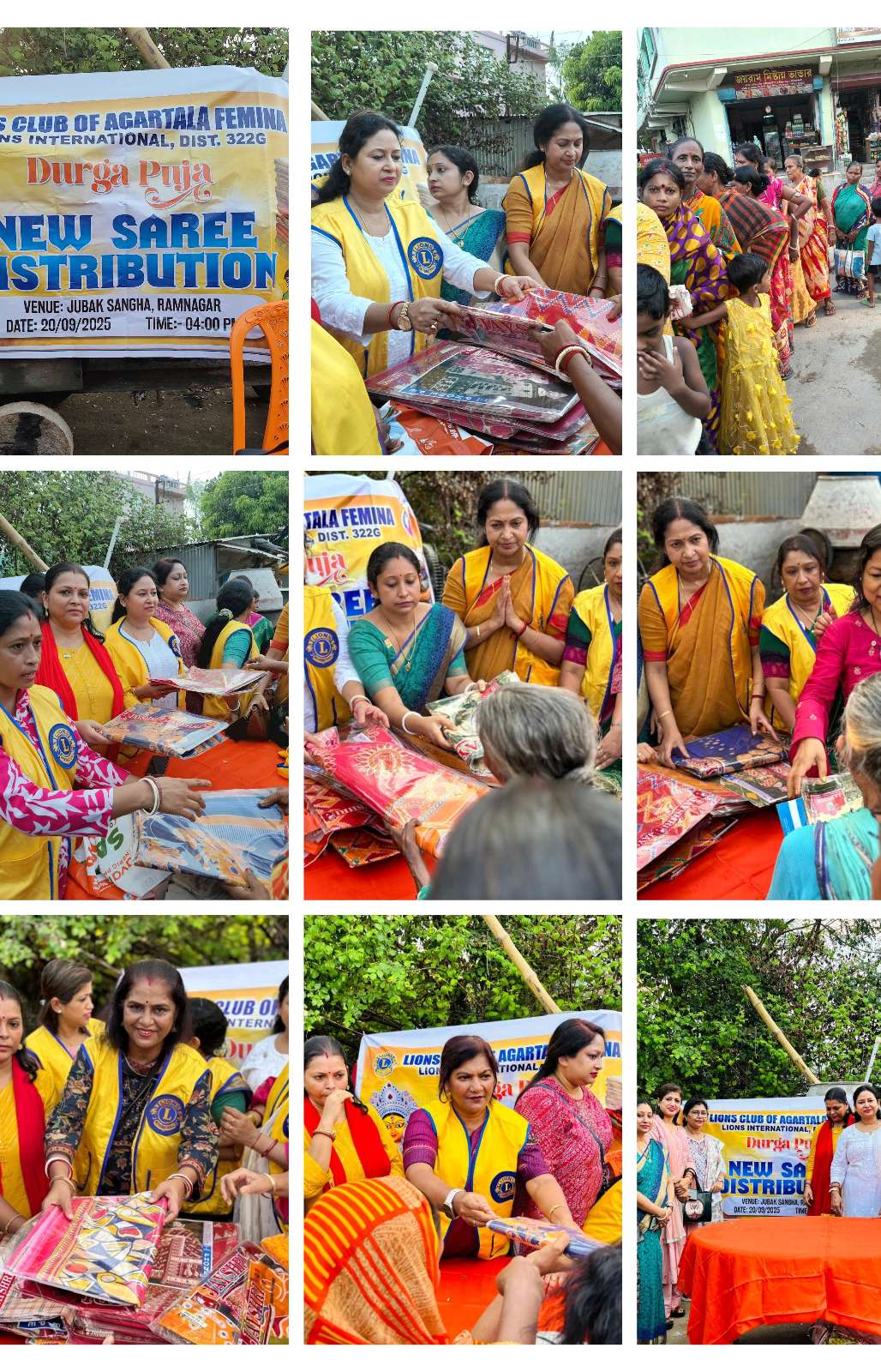 The Lions Club of Agartala Femina is proud to announce that on the auspicious occasion of “DURGAPUJA” starting from 28 th September 2025, we the members taken the initiative to distribute sarees to needy and economically weaker women. In keeping with the club’s motto of “We Serve”, this grand initiative has been designed to extend a hand of care, compassion, and dignity to the underprivileged sections of society. As a part of this project, the Lions Club of Agartala Femina distributed 175 sarees to the women to-day i.e 20 th Sept 2025.The program symbolizes respect, love, and solidarity with women who play a vital role in the foundation of every family and community. The distribution ceremony was held in nearer to Akhaura Check Post, Agartala with the active participation of Lions members and local leaders. This event was not just about distributing clothes, but about celebrating humanity and reinforcing the Lions’ mission to serve society selflessly.