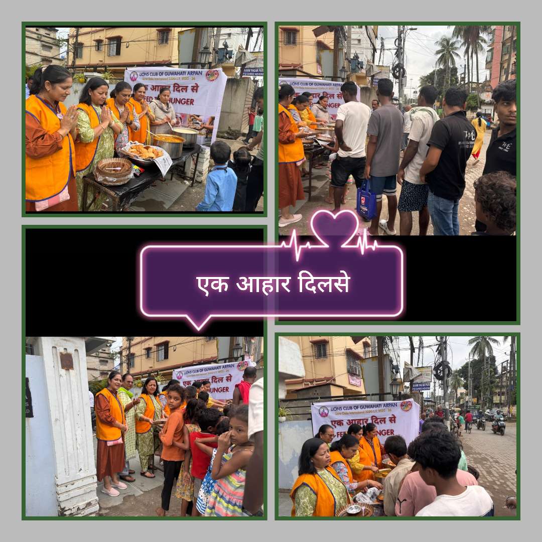 Lions Club of Guwahati Arpan *Ek Aahar Dil se* 15th September Continuing the pledge of meal distribution during Pitra Paksha, today food was served to 200 people, which included kheer, poori, and sabzi. The meal distribution program was organized near Hanuman Mandir, Bishnupur. The purpose of organizing the program at different locations each day is to ensure that more and more needy people can benefit from it. With the support of Lion Mamta Sikaria, Sangeeta Rashivasia, and Sadhana Chawchharia, the arrangement of meals for Ashtami/Navami was successfully completed. During the distribution, Sangeeta Rashivasia, Sumitra Gupta, Sadhana Chawchharia, Ritu Sikaria, Bela Choudhury, and Sita Goenka were present. A special mention goes to Sumitra Gupta, whose consistent presence and contribution to this service project every day is truly commendable.