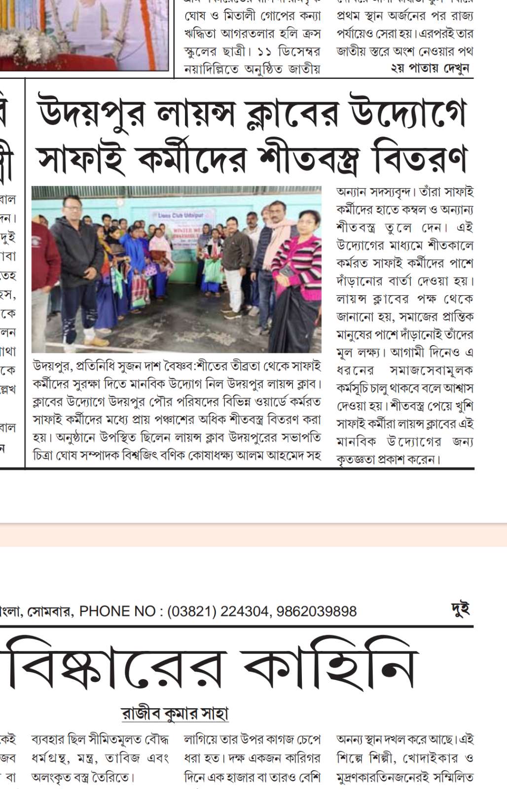 On 28th December 2025, Lions Club Udaipur organized a winter wear distribution program for municipal waste collection workers. Blankets and other winter essentials were distributed to 70 workers. The program was attended by 12 Lions Club members.