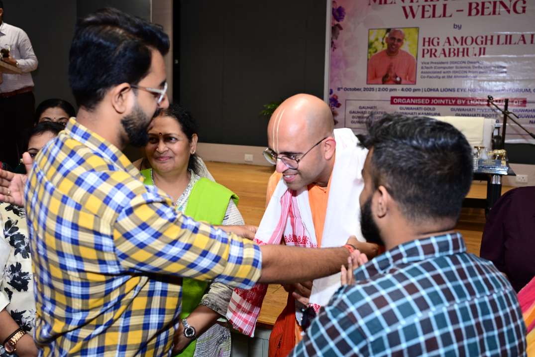 SA-08168541 Two members from our club attended a session organized by various Lions Clubs of Guwahati city by speaker Amogh Lila Das from ISKCON